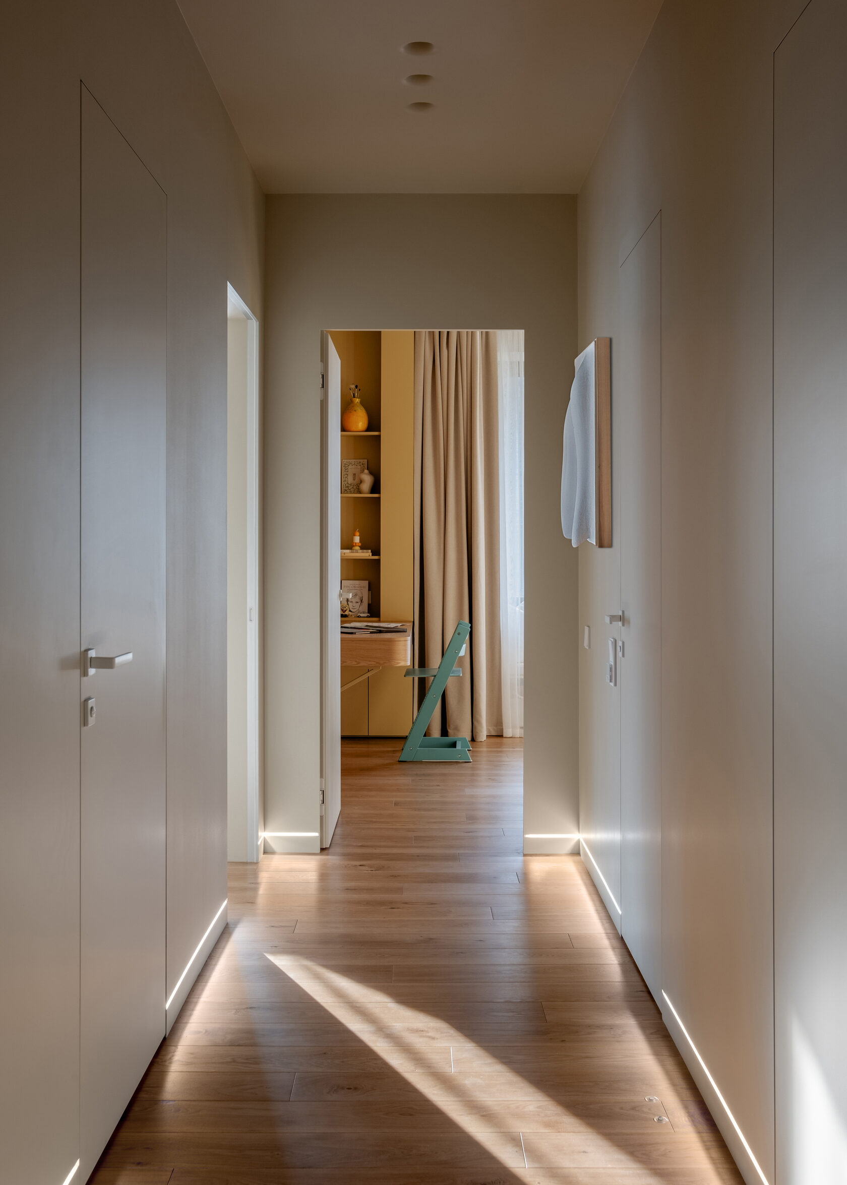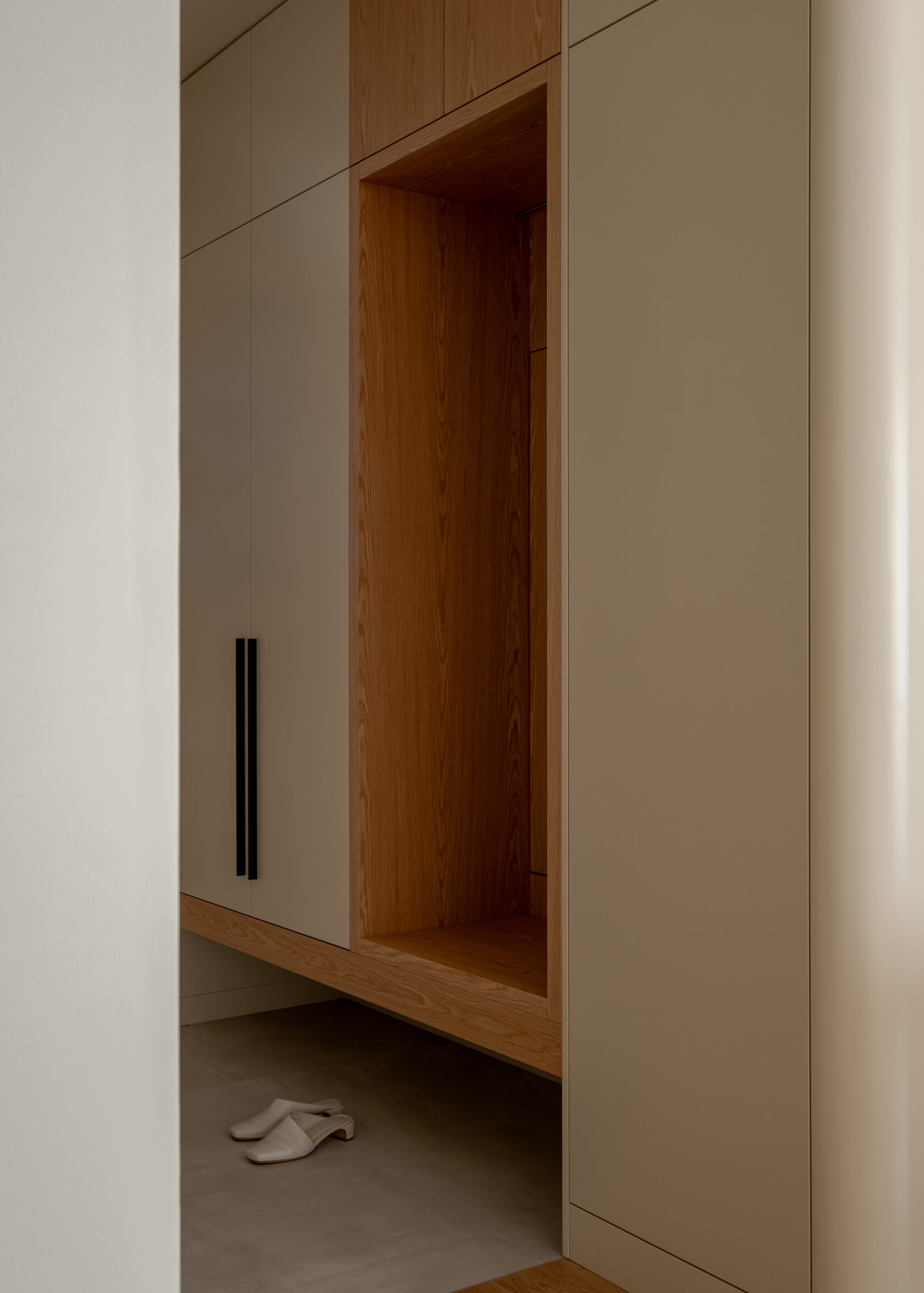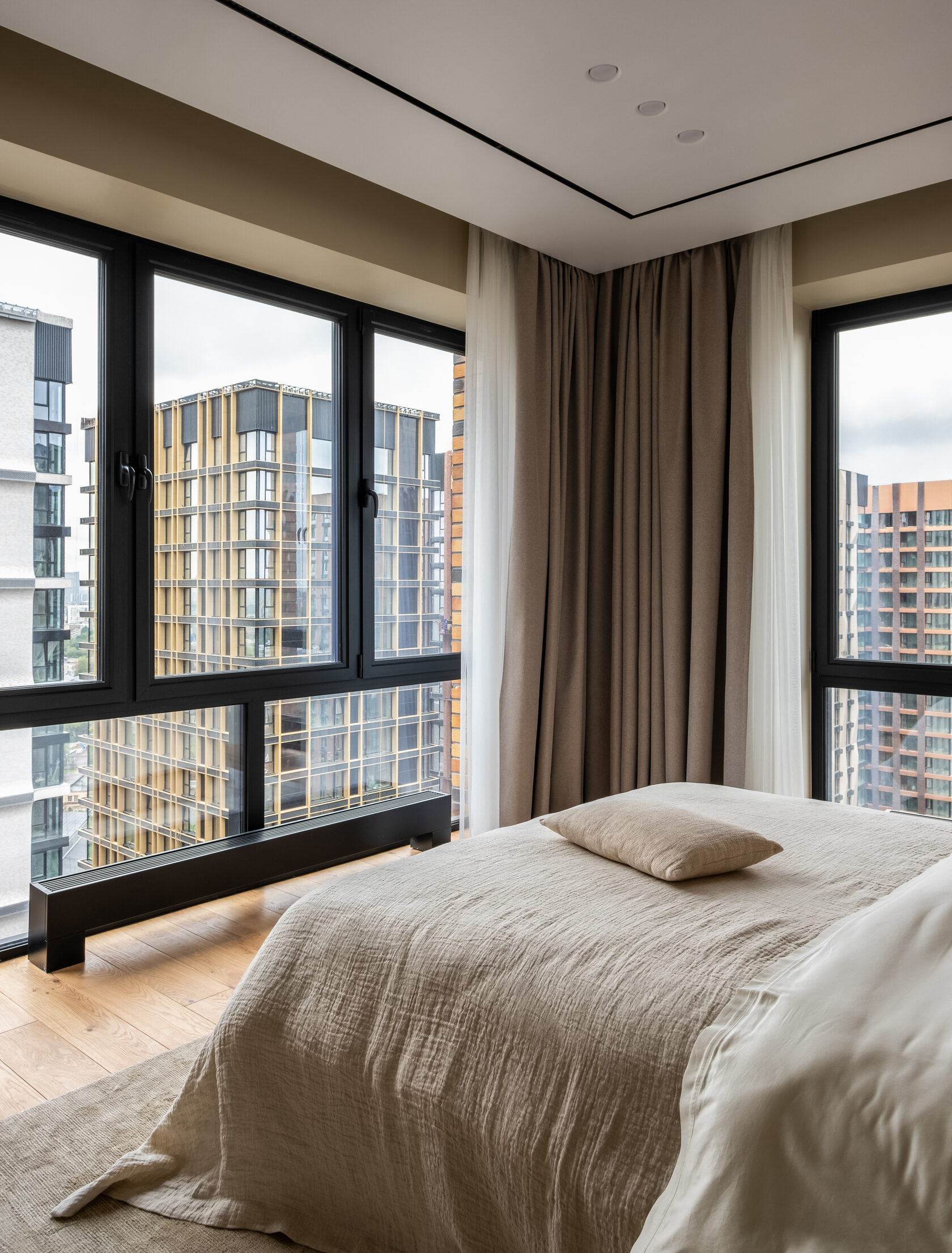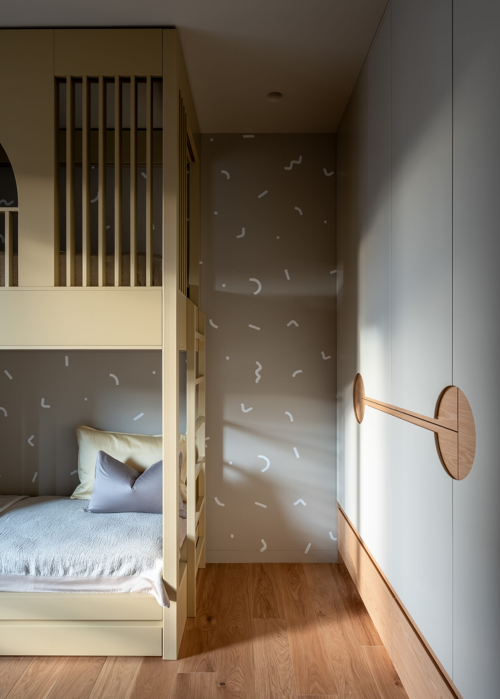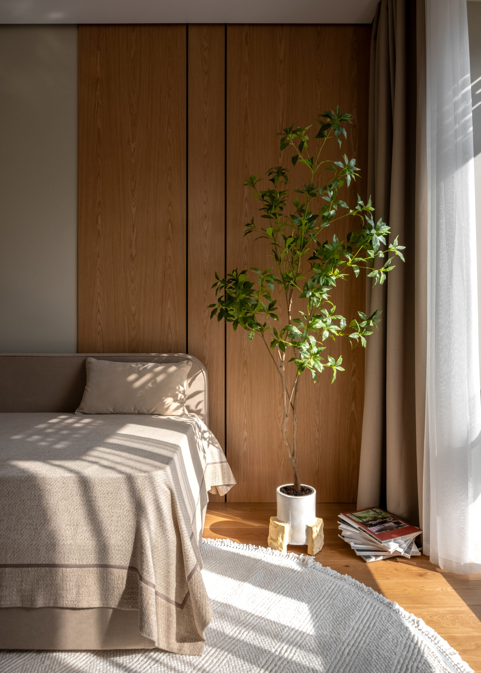 Представленный интерьер спроектирован с учетом потребностей семьи, состоящей из пяти человек: бабушки, родителей и разнополых детей. Этот ансамбль должен не только обеспечивать комфорт, но и создавать атмосферу уюта и тепла, что и достигается благодаря современному стилю оформления, преимущественно выполненному в мягких бежевых тонах. Такие оттенки наполняют пространство светом и спокойствием, вызывая желание проводить время вместе, общаться и делиться моментами друг с другом.