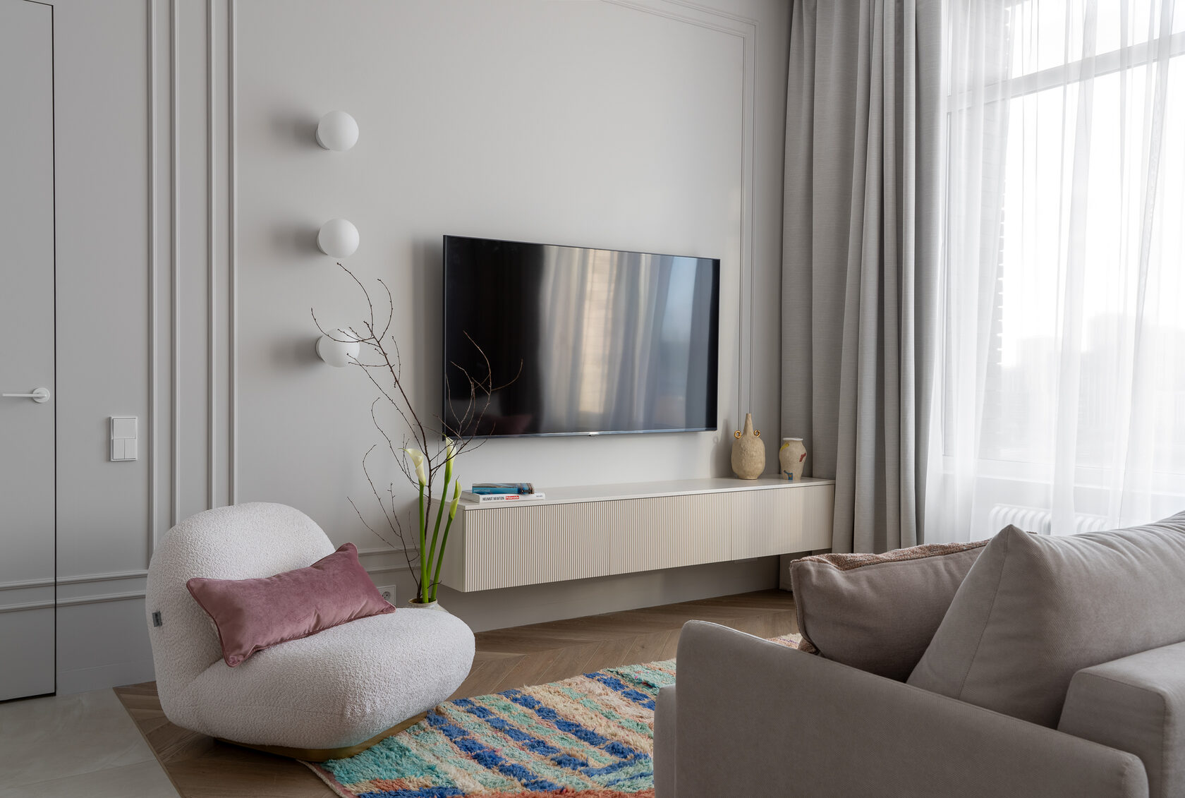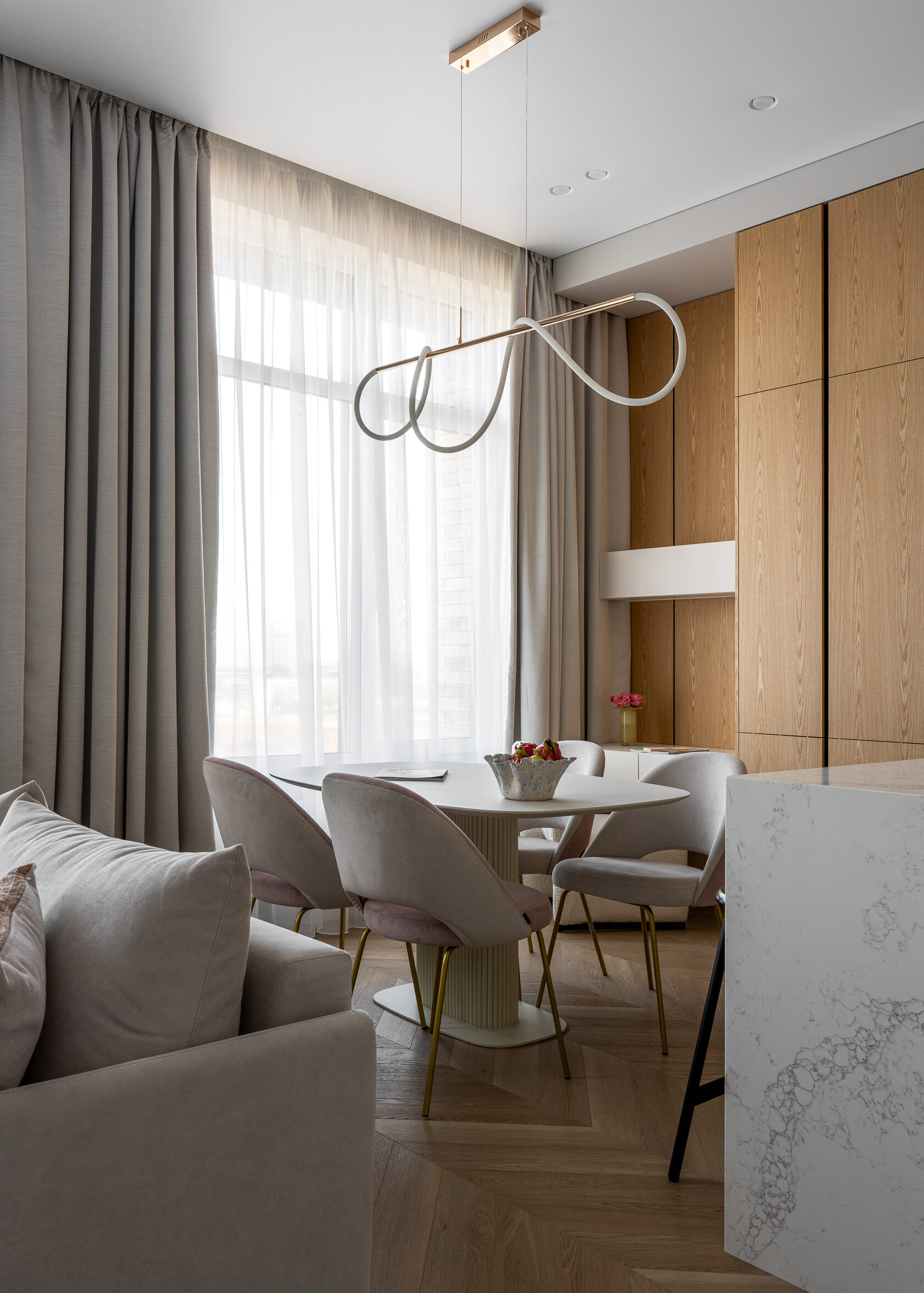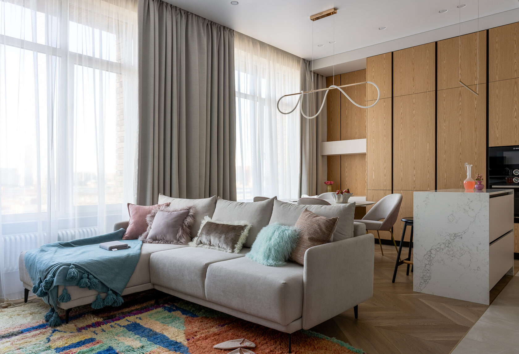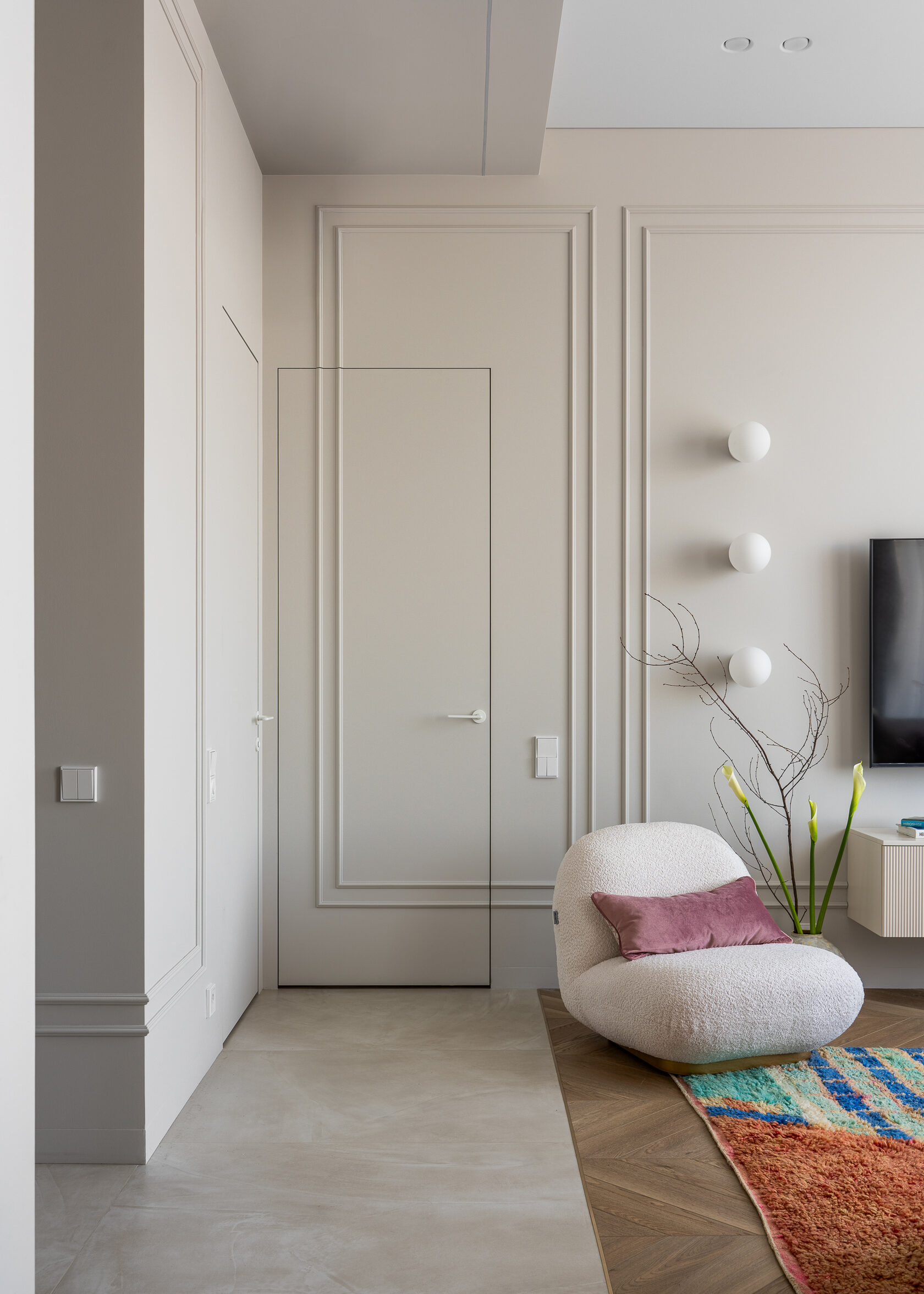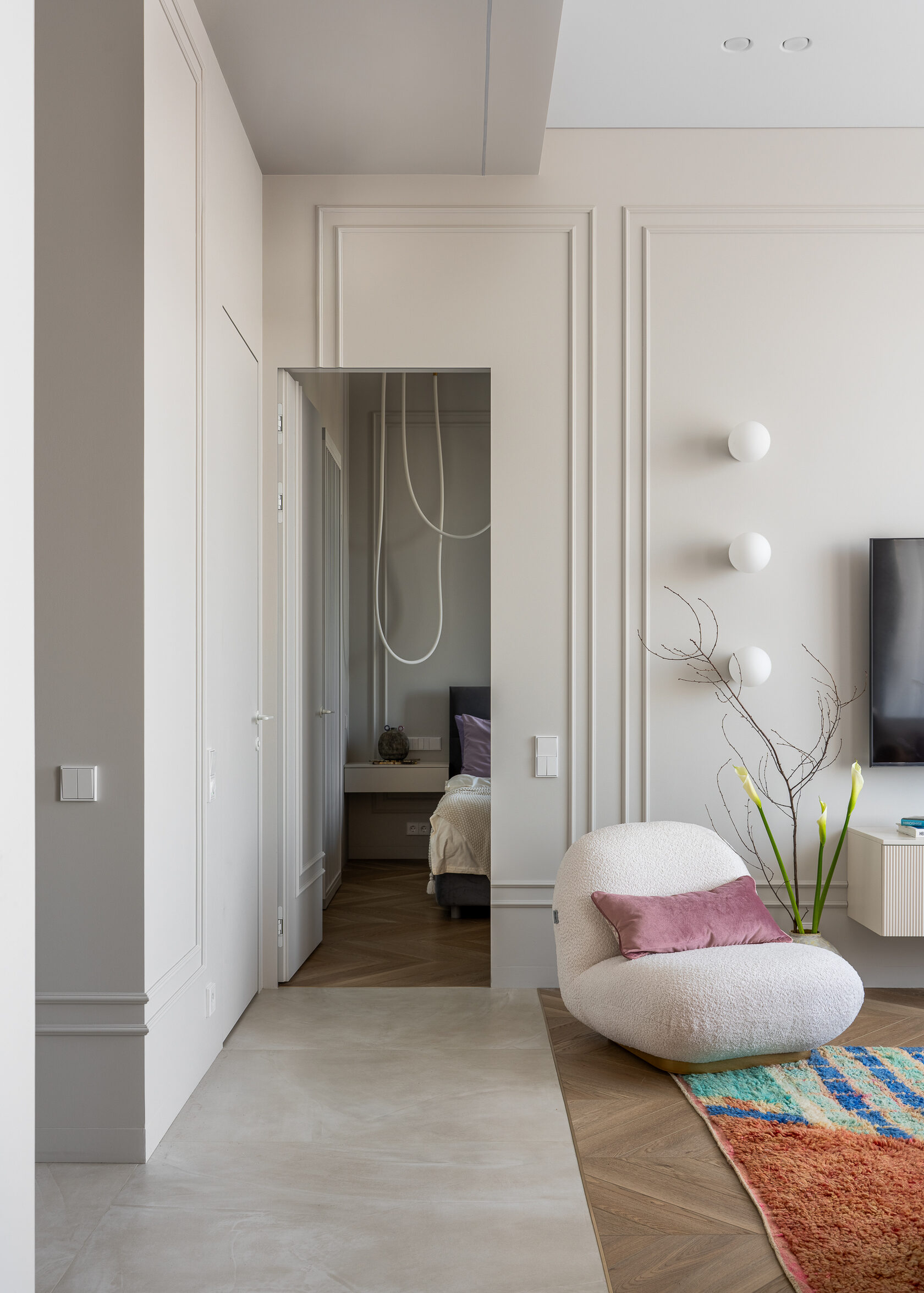 квартиры 58м2 Владельцы этой квартиры — молодая девушка, ценящая гармонию и эстетику, предпочитающая стиль современной неоклассики с яркими акцентами. Она любит уют, комфорт и аккуратность, что проявляется в продуманном интерьере и правильном использовании пространства. В планах и взглядах — создание современной, элегантной квартиры, в котором каждая деталь подчеркивает её индивидуальность и изысканный вкус. Вместе с ней будет проживать милый питомец — йоркширский терьер.